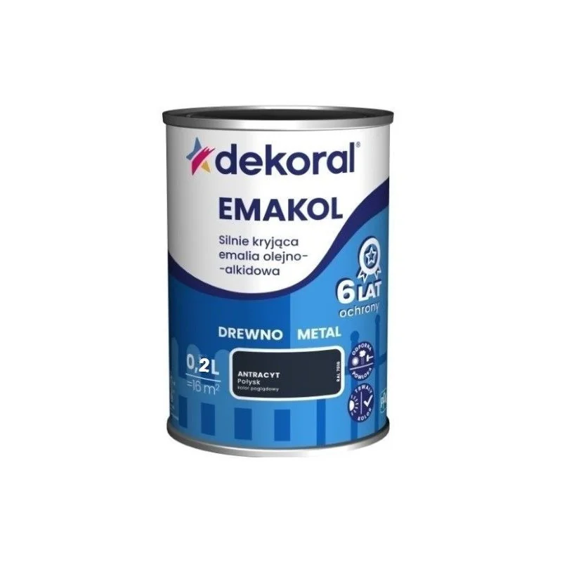 Emakol Antracyt Połysk 0,2L Silnie Kryjąca Emalia Do Drewna i Metalu Dekoral