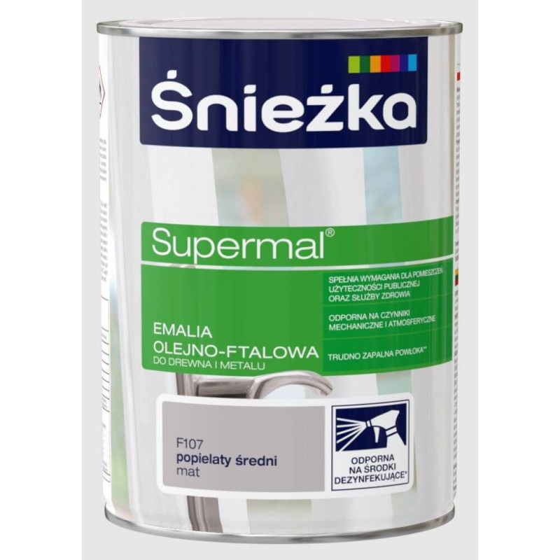Emalia Olejno-Ftalowa Supermal Popielaty Średni MAT 0.8L Śnieżka