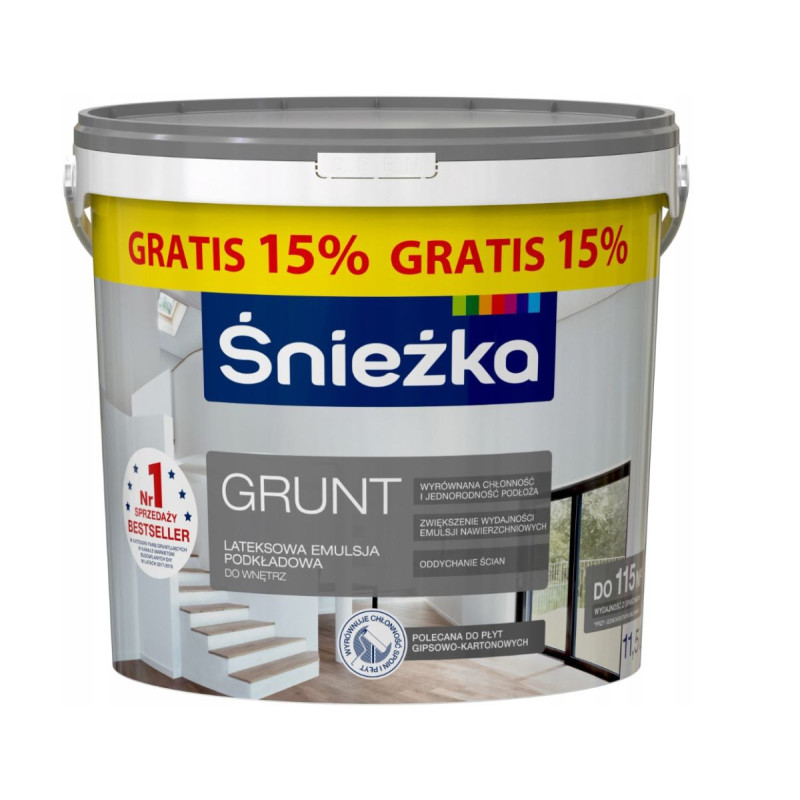 Emulsja Lateksowa Grunt Biała 10l + 15% Gratis Śnieżka