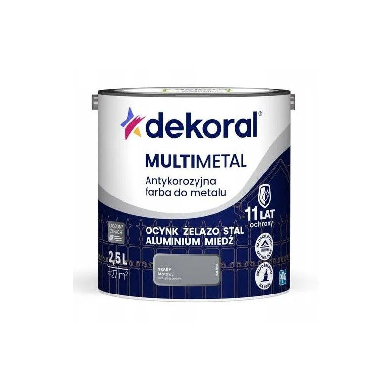 Farba Do Metalu Antykorozyjna Szary Mat 2,5L Dekoral