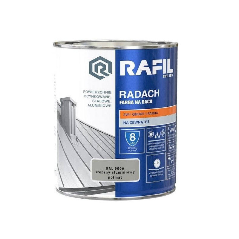 Farba Na Dach Radach 5L Srebrny Aluminiowy RAL 9006 Rafil