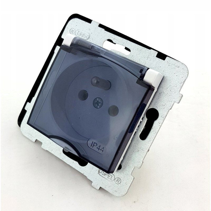 Gniazdo Bryzgoszczelne z Uziemieniem IP-44 Wieczko Przezroczyste, Biały Aria GPH-1UZ/M/00/D Ospel