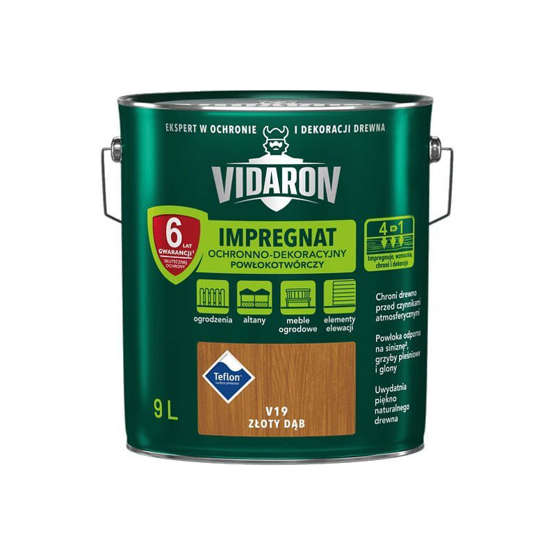 Impregnat Ochronno-Dekoracyjny Powłokotwórczy V19 Dąb Złoty 9L Vidaron