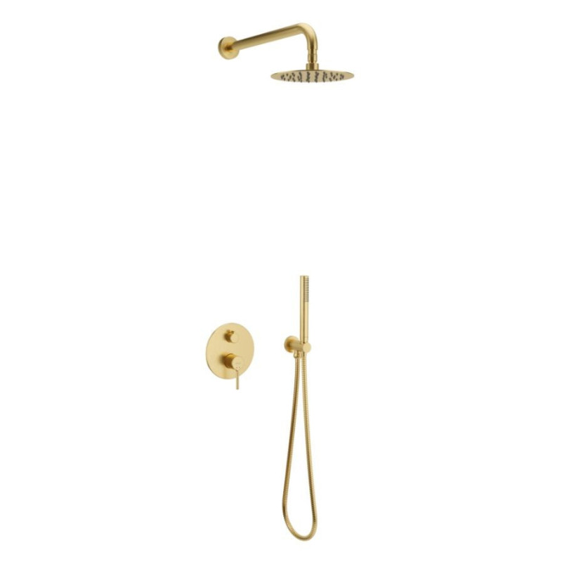 Zestaw Prysznicowo-Wannowy Podtynkowy 2 Funkcyjny Z Deszczownicą 25 cm Pi Złoty Szczotkowany AREX.SET.1245GB Excellent
